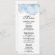 Wedding menu card with a beautiful icy blue agate design with faux gold glitter accents.