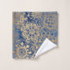 A towel set featuring a beautiful hand drawn blue and gold mandala pattern design. Makes a beautiful addition to your bathroom or gift idea for someone who likes boho mandala designs.