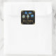 Add a touch of festive luxury to your holiday wrapping with this elegant Christmas sticker featuring five royal blue and gold ornaments against a sparkling black background. Perfect for sealing gift wrap, labeling presents, or adding a personalized flourish to your seasonal packaging. Customize with your family name and year for a stylish finishing touch.