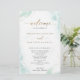 Elegant Wedding program with delicate watercolor stains background in turquoise, aqua, dusty blue and soft green hues. Gold details in speckles and modern hand written calligraphy. Ability to make text changes and adjustments by selecting customize further. Front with wedding ceremony details, back with wedding party names and thank you message for your guests. Elegant modern feel. Also available with same watercolor background and greenery details. Part of our "Airy Blue and Green Watercolor" collection with variety of coordinating products available.