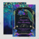 Elegant Blue and Purple Flowers Peacock Birthday Invitation