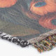 A quality printed throw has its advantages. This is a much finer weave throw than its loopier cousins, and though lighter, it is worth the investment for custom room accessorizing. The back is much prettier than the typical brown, and the fringe on the long sides very vivid, the selvage nicely done. Before photographing, I washed the throw in cold water, delicate, with a thicker woven throw the same size. On tumble dry low, this throw was dry in half the time as the other. This is a very practical quality if you use throws for furniture covers or to wrap up in frequently. The sleekness of the fabric makes it a great layer for accenting or protecting without the feeling of sitting on too much stuff. Perfect for napping or when you feel a light chill coming on. The color printing is beautiful and on this fabric, matched the design and color of my Photoshop image. This is an advantage for blending room fabrics and colors. The fringe on the short sides prints the colors from the design image and therefore varies from the side fringe. I streaked a white fractal line through the plaid pattern to give the illusion of weaving. This printed as crisp as an illusory thread, and put some white in the short side fringe, showing another advantage of print vs loomed- for artistic purposes, line lines, detail, and color integrity can be planned and preserved. My loomed throws have color limitations and more of a needlepoint texture. Print throws reproduce an exact image. The throw felt a little stiff straight out of the package, but this went away in the first delicate wash. Of course I searched the wash water for ink or bleeding and there was none.
