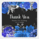 Elegant Blue and Silver Flowers Birthday Party Square Sticker