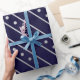 Elegant Blue and Silver Foil Christmas Stripes Wrapping Paper