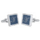Elegant Blue and Silver Gray Monogram A Modern Cufflinks, Birthday Gift for Him, Stylish Suit Accessories
