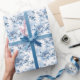 Elegant Blue and White Engraved Peonies Wrapping Paper