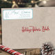 This elegant return address label features a serene design that captures the spirit of the holiday season. The background is a soothing white, evoking a sense of calm and winter serenity. On the right side, a light blue abstract Christmas tree adds a touch of festive charm, its delicate outline suggesting the beauty of winter's quiet elegance. "Merry Christmas" is gracefully inscribed in a classic sweeping script font, adding a timeless touch to the design. Ample space is provided for your name and address, ensuring that your holiday greetings arrive with a personal and stylish flair. This label is perfect for adding a touch of sophistication to your seasonal correspondence.