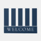 Add and elegant touch to your front door with this stylish welcome doormat. The simple design features a vertical blue and white stripe pattern with and WELCOME in a simple white typography.