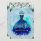 Elegant blue aqua floral glitter gown sweet 16 inv invitation