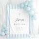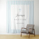 Elegant baptism backdrop tapestry that feature light blue & white stripes and a simple cross