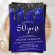 Elegant Blue Black Glitter Drips 50 Birthday Party Invitation