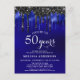 Elegant Blue Black Glitter Drips 50 Birthday Party Postcard