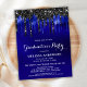 Elegant Blue Black Glitter Drips Graduation Party Postcard