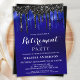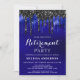 Elegant Blue Black Glitter Drips Retirement Party Invitation