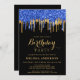 Elegant Blue Black Gold Glitter Drips Birthday Invitation