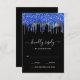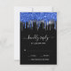 Elegant Blue Black Silver Glitter Drips Wedding RSVP Card