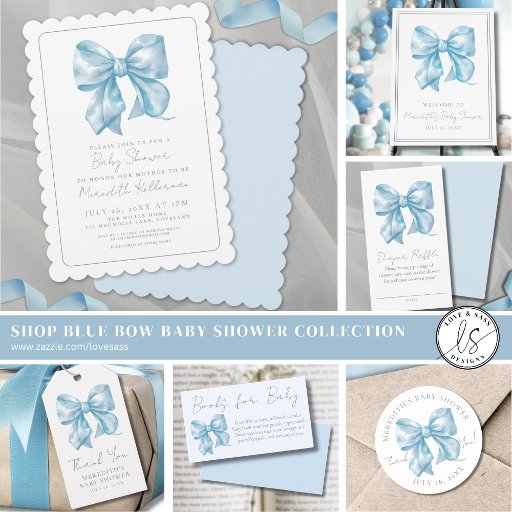 Cute Elegant Watercolor Blue Bow Baby Shower PartyDesigned by Jo P.