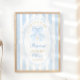 Elegant Blue Bow Boy Baptism Welcome Poster. Matching items available.
