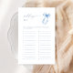 Elegant Blue Bow Wedding A-Z Bridal Shower Game