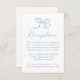 Guide your guests with charming simplicity using this soft blue bow wedding reception card. At the top, a hand-drawn bow in gentle blue and the word “Reception” in elegant script create a romantic yet modern look. Customize with your celebration details and website link—perfect for spring, coastal, or light blue-themed weddings.