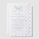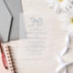 Set the tone for your special day with this minimalist vellum wedding invitation, featuring a delicate hand-drawn bow in soft blue for a romantic and whimsical touch. The subtle blue lettering complements the sheer vellum background, while your names and wedding details are displayed in a refined mix of serif and script fonts. Perfect for coastal, garden, or spring weddings, this simple yet elegant design offers a timeless way to invite guests to celebrate your love.