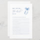 Add a fun yet elegant twist to your bridal shower with the "Elegant Blue Bow Who Knows The Bride Best" game. Featuring a soft blue bow design paired with graceful typography, this game is a stylish way to engage your guests and celebrate the bride-to-be. The game asks fun, personal questions about the bride, allowing guests to show how well they know her. Perfect for a chic bridal shower, this game adds a lighthearted element to the event while keeping the atmosphere sophisticated and fun. It’s a great way to create lasting memories while celebrating the bride!