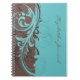 You can personalize the name on this elegant aqua blue and chocolate brown floral personalized journal notepad. A beautiful design! Use it for whatever you want though. It can also make a nice recipe notebook, ledger, wedding planner, etc. Just anything you want to write notes in.