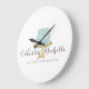Coordinates with the Elegant blue Cake with Florals Cake Decorating Business Card Template by 1201AM. An elegant aqua blue tiered cake decorated with white flowers sits atop a faux gold cake stand for a beautiful aesthetic on this bakery or cake decorator's clock design. Update the calligraphic text with your name or business name for an instant logo. A great product to expand your brand identity from your business cards into your bakery or kitchen! © 1201AM CREATIVE