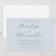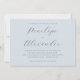 This elegant wedding invitation features a serene light blue background with a minimalistic layout that emphasizes sophistication and tranquility. The design showcases a refined script font for the names, creating a focal point amidst ample negative space, while the rest of the text is presented in a clean serif typeface. Perfect for an upscale event, this invitation conveys a mood of anticipation and celebration, ideal for couples seeking a classic yet modern aesthetic. Its customizable elements allow for personalization, making it suitable for any special occasion.