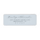 These return address labels feature a simple, elegant design with a light blue background and dark gray text. The layout includes cursive script for names at the top, followed by block serif font for addresses, creating a sophisticated contrast. The minimalistic composition emphasizes clarity and focus, making it perfect for personalized correspondence. The serene color palette and refined typography convey a sense of tranquility and formality, ideal for special occasions or everyday use.
