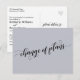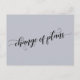 This simple card allows you to choose your background color (if you even want a change!) while enjoying this gorgeous font. The front reads "change of plans" using a pretty script with swirls and waves. The back includes template placeholders for your details with matching accent words featuring the calligraphy font. Use these template fields to add your personal details and change my draft wording to suit your needs and situation. // 99 //