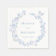 Elevate your special day with our elegant, vintage Baroque-style wedding cocktail napkin, a masterpiece of timeless elegance. Featuring a delicate French dusty blue chinoiserie wreath with delicate line art flowers and a butterfly on a pristine white background, this design exudes classic charm and sophistication. Its simplicity highlights its refined details, creating a design as graceful as your love story. Perfect for those who cherish tradition and elegance. Created by Simply Farmhouse Press.