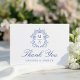 Elegant Blue Chinoiserie Monogram Crest Wedding Thank You Card