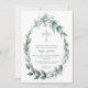 Elegant Blue Cross Greenery Baptism Invitation