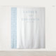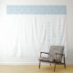 This elegant wedding backdrop features a minimalist design with a clean, sophisticated aesthetic. The left side showcases a vertical band of light blue damask pattern, adding subtle texture against the crisp white background. Centered on the right are customizable names and date in a classic serif font, rendered in soft gray-blue for a harmonious look. The restrained color palette of whites and blues creates a serene and timeless feel, perfect for formal celebrations. Ideal for weddings, this design blends traditional typography with contemporary minimalism to convey elegance and calmness.