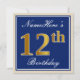 Elegant, Blue, Faux Gold 12th Birthday + Name Invitation