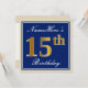 Elegant, Blue, Faux Gold 15th Birthday + Name Invitation