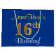Elegant, Blue, Faux Gold 16th Birthday + Name Large Gift Bag