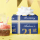 This simple and elegant wrapping paper design features a personalized message like "Andrew’s 21st Birthday" (with the "21st" having a faux/imitation gold-like coloring look) within a blue-colored square area featuring a simple border outline. The name is in an elegant white-colored script-like text, and can be customized. Wrapping paper like this could perhaps be used when wrapping birthday gifts for somebody who is celebrating their twenty first birthday. [~Z0000221]