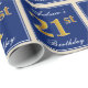 Elegant, Blue, Faux Gold 21st Birthday + Name Wrapping Paper