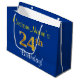 Elegant, Blue, Faux Gold 24th Birthday + Name Large Gift Bag