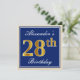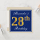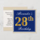 Elegant, Blue, Faux Gold 28th Birthday + Name Invitation