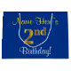 Elegant, Blue, Faux Gold 2nd Birthday; Custom Name Large Gift Bag