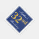 This simple and elegant paper napkin design features a message like "Stephen’s 32nd Birthday" (with the "32nd" having a faux gold-like coloring) within a blue-colored square area featuring a simple border outline. The name is in white-colored script-like text, and can be customized. Napkins like these could perhaps be used at a birthday party for somebody who is celebrating their thirty second birthday. [~Z0000141]