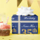 This simple and elegant wrapping paper design features a personalized message like "Name-Here’s 35th Birthday" (with the "35th" having a faux/imitation gold-like coloring look) within a blue-colored square area featuring a simple border outline. The name is in an elegant white-colored script-like text, and can be personalized. Wrapping paper like this could perhaps be used when wrapping birthday gifts for somebody who is celebrating their thirty fifth birthday. [~Z0000221]