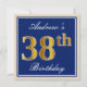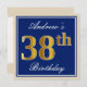 Elegant, Blue, Faux Gold 38th Birthday + Name Invitation