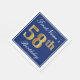 This simple and elegant paper napkin design features a message like "FirstName’s 58th Birthday" (with the "58th" having a faux gold-like coloring) within a blue-colored square area featuring a simple border outline. The name is in white-colored script-like text, and can be personalized. Napkins like these could perhaps be used at a birthday party for somebody who is celebrating their fifty eighth birthday. [~Z0000141]