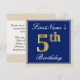 Elegant, Blue, Faux Gold 5th Birthday; Custom Name Invitation