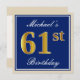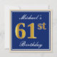 Elegant, Blue, Faux Gold 61st Birthday + Name Invitation