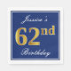 Elegant Blue, Faux Gold 62nd Birthday; Custom Name Napkins